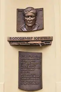 - Урочисте відкриття меморіальної дошки Володимиру Юричку. офіційний сайт НМУ. Процитовано 3 квітня 2015.[недоступне посилання з серпня 2019]