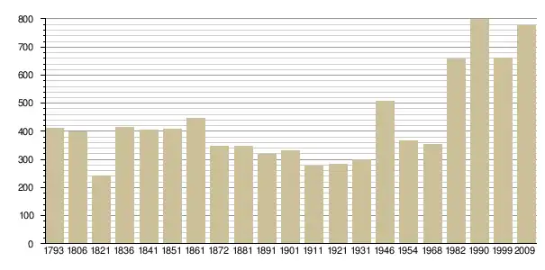 - Insee : historique des populations par commune depuis le recensement de 1962, наведено за французькою вікіпедією