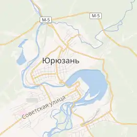 Залізнична станція Юрюзань на лінії В'язова — Катав-Іванівськ, на якій немає пасажирського руху з 2008 року. Лікарня, палац культури, будинок дитячої творчості, станція юних техніків.