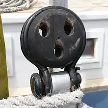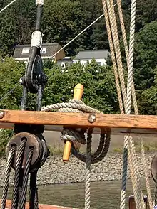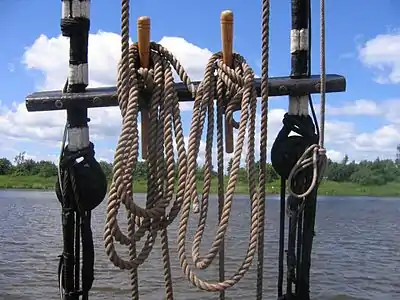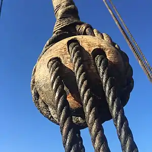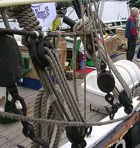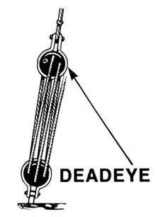 Для натягання штагів застосовували штаг-юферси: вони мали тільки один великий отвір, споряджений з одного боку трьома маленькими кіпами, в які укладався талреп.
