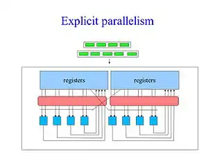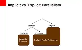 У комп'ютерному програмуванні явний паралелізм - це уявлення паралельних обчислень за допомогою примітивів у вигляді директив спеціального призначення або викликів функцій. Більшість паралельних примітивів пов'язані з процесом синхронізації, зв'язку або завдання ділення. Оскільки вони рідко сприяють фактичному виконувананню наміченої обчислювальної програми, їх обчислювальна цінність часто розглядається, як розпаралелювання накладних витрат.