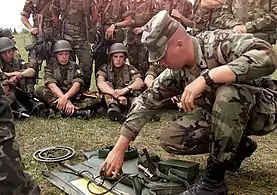 Американський військовослужбовець показує італійським колегам деталі детектора мін під час навчань «Щит миру», 13 липня 2000