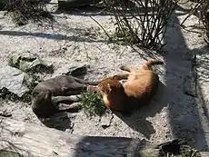 Тіло завдовжки 55—77 см, а хвіст — 33—60 см, висота в загривку приблизно 25—35 см. Вага становить 4,5—9 кг[16]. Самці трохи більші й важчі, ніж самиці тої ж популяції[17]. Довжина задньої ступні — 120–156 мм, довжина вух — 25—40 мм. Мордочка коротка, а очі за кольором — медово-коричневі. Самиці мають три пари молочних залоз. Зубна формула: 3/3, 1/1, 3/2, 1/1 = 30[18].