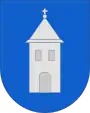 На блакитному тлі срібна гостроверха вежа», що нагадує про побудову в містечку його, власниками графами Лянцкоронськими замку, відомого з ХVІІ ст., пізніше підтверджений.[4]