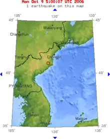9 жовтня КНДР оголосила про успішне проведення ядерного випробування. У повідомленні Центрального телеграфного агентства Кореї (ЦТАК) говорилося: «Наш дослідницький підрозділ безпечно й успішно здійснив підземне ядерне випробування… Ядерне випробування стало історичною подією, яке принесло щастя нашим військовим та народу. Ядерне випробування внесе внесок у підтримання миру і стабільності на Корейському півострові та в прилеглому районі».