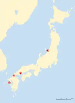 - місто Хіросіма, місто Куре, місто Сімоносекі, місто Ямаґуті.
