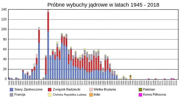 КНР: 45 випробувань (23 наземних і 22 підземних, на базі Лоб-Нор у Сіньцзяні).