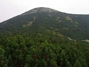 ![]() Вид на гору Яйко-Ілемське зі схилів гори Поганець | ||||