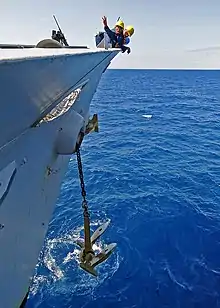 Для направлення якірного ланцюга служать розташовані в бортах і палубі якірні клюзи.