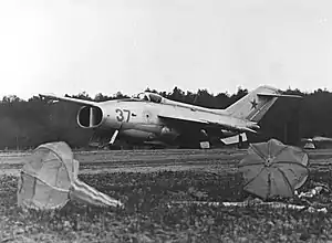 Зазначена компоновка силової установки призвела до застосування шасі з одноколісною носовою опорою і двоколісною задньою. Щоб забезпечити надійну безпеку пілота в позаштатних ситуаціях, у літаку встановили пристрій автоматичного примусового катапультування. Була також система автоматичного управління на близьконульових швидкостях польоту.