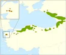 Природний ареал — гори східного Причорномор'я: Туреччина, Грузія, Північний Кавказ, північна Вірменія і північний захід Азербайджану.
