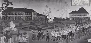 Після заснування міжнародного поселення, на пагорбі Ямате виникло ціле «містечко» в європейському стилі. Крім житлових будинків, тут були церкви, громадські будівлі і навіть кладовище. Більшу частину «європейської» забудови знищив Великий кантоський землетрус 1923 року.