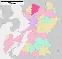 - Хіґашіде М. Історія міст префектури Кумамото. Адміністративний поділ Японії. (японською). Архів оригіналу за 27 червня 2013. Процитовано 20 вересня 2012.