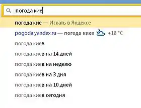 Крім власне пошуку, підказки вбудовані у власні пошукові системи інших сервісів «Яндекса».