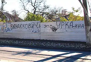 - «Чё эти дебилы не расходятся?», — спросил Янукович о своих избирателях. ВІДЕО. Архів оригіналу за 3 листопада 2011. Процитовано 14 червня 2011.
