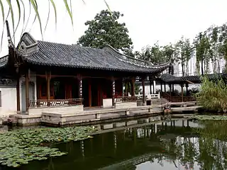 Цей сад, що також називається Jixiao Shan Zhuang, був закладений He Zhidao, чиновником Qing XIX століття. Цей садовий будинок славиться 430 m (1 410 ft) двоповерховим звивистим коридором, стіни якого облицьовані скрижалями, висіченими на камені рядками з класичної поезії. У саду є театр під відкритим небом, розташований на острові посеред ставу для розведення риби.