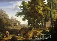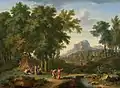- «Аркадський пейзаж з водоспадом і Св. Петром, що лікує паралічного», до 1725 р., Мауріцхейс, Гаага