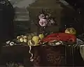 Ян ван ден Геке. «Натюрморт з фруктами, трояндами і омаром», Музей образотворчих мистецтв (Будапешт)