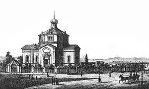 Під час Громадянської війни тут було схоплено і повішано чотирьох більшовиків, за що площа дістала назву — Сквер чотирьох шибеників. Ця назва зберігалася до Другої світової війни. У 1930-х роках церкву на площі було зруйновано, в свою чергу зведено школу.