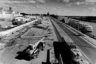 Будівництво перегону від станції «Московська» до станції «Ярмарок» велося нестабільно. Будівництво станції почалося 1993 року, але 1996 року з площі Леніна, як і з площі Горького, були прибрані паркани і розібраний будмайданчик. Необхідність станції для одного з найбільших виставкових комплексів Росії оскаржувалася, але тим не менше роботи з її проектування та розробці велися. Після «Ярмарку» планувалося продовжити Сормовсько-Мещерську лінію далі в райони «Стрілка» (в тому числі, з урахуванням планів з будівництва ділового району «Стрілка-Сіті») і «Мещерське озеро» аж до станції «Волга». У разі, якщо б від проекту «Стрілка-Сіті» було вирішено відмовитися, то наступною станцією після «Ярмарку» була б станція «Мещерське озеро».