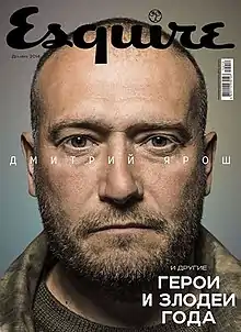 - Українська версія журналу Esquire розмістила Дмитра Яроша на обкладинці грудневого номера за 2014 рік. Випуск присвячений темі «Дмитро Ярош та інші герої і лиходії року». Тираж був розкуплений в рекордні терміни, а інтернет-користувачі влаштували флешмоб — викладали в соцмережі фотографії з журналом.[43]