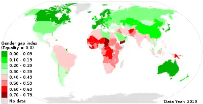 Ґендерна нерівність[1] (англ. Gender inequality) — це ситуація, коли жінки й чоловіки не є фактично рівними за правами, можливостями й уявленнями про них унаслідок сексизму. Донині жінки гірше за чоловіків представлені в багатьох областях, включаючи безпеку, освіту, можливості на ринку праці, політику, платню за рівноцінну роботу (ґендерний розрив в оплаті), а також потерпають від ґендерного насильства (насильство проти жінок).