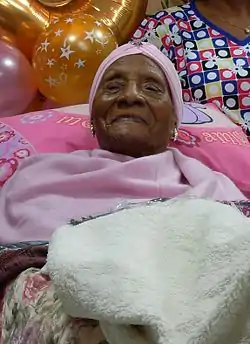 - Bermudez, Esmeralda (12 вересня 2009). Gertrude Baines, 115; gained fame as world’s oldest person. Boston.com. Процитовано 6 квітня 2018.