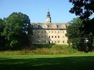 Монументальний комплекс замку, який має житловий та оборонний характер, витримано у стилі південнонімецького ренесансу. Замок є одним із найцінніших об'єктів цього типу у південно-західній Польщі[3].