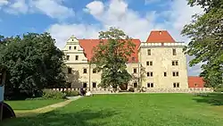 Під час Другої світової війни замок було пошкоджено[1]. Останній власник замку, барон Крістіан Моріц фон Пріттвіц і Ґафрон, був змушений його покинути після війни, а замок з того часу почав поступово занепадати[1]. Занедбаним був також парк, що оточує замок.
