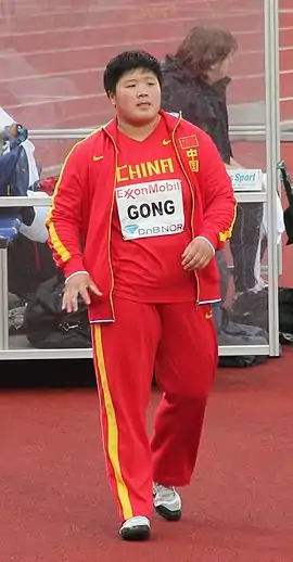 - Dominant Gong wins shot put crown. Світова легка атлетика. Архів оригіналу за 18 серпень 2021. Процитовано 18 серпня 2021.