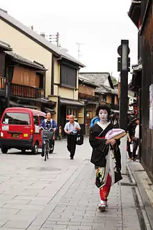Там все ще багато старовинних будинків (маття), частина з яких є знаменитими «чайними будиночками» — о-тяя. Все це — місця, де вищі верстви суспільства, від самураїв старого Кіото до сучасних бізнесменів, відпочивали та розважалися в суспільстві гейш.