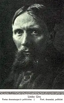 Людас Ґіра (27 серпня 1884, Вільна — 1 липня 1946, Вільнюс) — литовський поет, драматург, критик, громадський і військовий діяч. Секретар Державної видавничої комісії Міністерства освіти Литви (1927—1936).