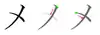 - Манйоґана: 売 • 馬 • 面 • 女 • 梅 • 米 • 迷 • 昧 • 目 • 眼 • 海