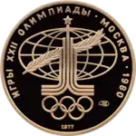 «Ігри XXII Олімпіади в Москві (Алегорія «Спорт і світ»)» (рос. Игры XXII Олимпиады в Москве (Алегория «Спорт и мир»)) — золота ювілейна монета СРСР вартістю 100 карбованців, випущена 1 січня 1977 року. Монета присвячена XXII Літнім Олімпійським іграм у Москві, які відбулися з 19 липня по 3 серпня 1980 року — це були перші в історії Олімпійські ігри на території Східної Європи, а також перші Олімпійські ігри, проведені в соціалістичній країні. Частина змагань Олімпіади-1980 проводилася в інших містах Радянського Союзу, а саме: вітрильні регати стартували в Талліні; попередні ігри і чвертьфінали футбольного турніру відбулися в Києві, Ленінграді та Мінську; змагання з кульової стрільби пройшли на стрільбищі «Динамо» в підмосковних Митищах. Ігри відомі тим, що понад 50 країн бойкотували Олімпіаду в зв'язку з введенням в 1979 році радянських військ в Афганістан. Деякі спортсмени з країн, що бойкотували Ігри, все ж приїхали в Москву і виступали під олімпійським прапором. Цей бойкот став однією з основних причин відповідного бойкоту Радянським Союзом та низкою його союзників наступних літніх Олімпійських ігор в Лос-Анджелесі в 1984 році.