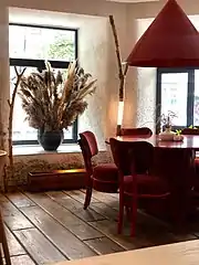 Інтер'єр ресторану створювала команда Balbek Bureau архітектора-мінімаліста Слави Балбека, яка раніше мала досвід роботи з рестораном української кухні Barvy.[2][1] Стільці для ресторану створила дизайнер Катерина Соколова.[7]