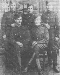 ![]() Командири 102-го, 115-го і 118-го батальйонів на військових курсах в Мінську, 1942. | |