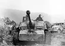 ![]() Штурмова гармата з американським бронетранспортером M3 на задньому плані | |