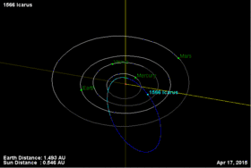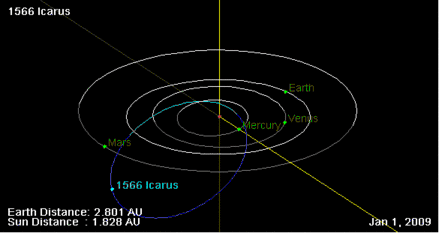 - Орбіта астероїда Ікар і його положення в Сонячній системі