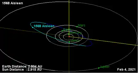 Орбіта астероїда Айслін і його положення в Сонячній системі
