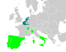 Королем Іспанії, Португалії, частини Італії є Філіп II Розсудливий (до 1598). Він же є формальним правителем Нижніх земель, де триває війна за незалежність. Північна Італія за винятком Венеціанської республіки належить Священній Римській імперії.