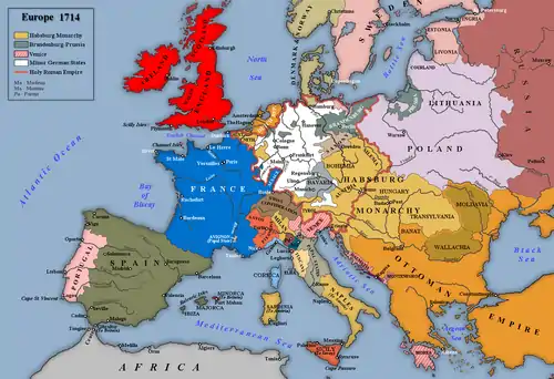 Священна Римська імперія — наймогутніша держава Європи. Її територія охоплює крім німецьких земель Угорщину з Хорватією, Трансильванію, Богемію, Північ Італії. Її імператор — Карл VI Габсбург (до 1740). Король Пруссії — Фрідріх-Вільгельм I (до 1740).