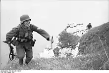 ![]() Німецькі солдати на польових заняттях з бойової підготовки. Окупована Франція. 1942 | |