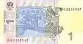 Банкнота містить вертикально розміщену в товщі паперу між водяним знаком та портретом полімерну металізовану кодовану стрічку шириною близько 1,3 мм, яка видима при розгляді банкноти проти світла як темна смужка з видимим прозорим написом «1 гривня», що повторюється.[3]