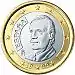 ![]() | з 2006 | У центрі монети на внутрішньому диску розміщено портрет 265-го Папи Римського Бенедикта XVI[28]. З правого боку від портрета у два рядки розміщено позначку італійського монетного двору у вигляді літери R та рік випуску монети. Також справа над плечем понтифіка знаходиться знак гравера монети — абревіатура M.C.C. INC.; ініціали автора ескізу монети — D.L. — розміщені над правим плечем Папи. З лівого і правого боків портрет оточений круговим написом, що вказує на назву держави, яка випустила монету, — CITTA' DEL VATICANO. На зовнішньому кільці монети по колу розміщено зображення 12 п'ятикутних зірок[58]. | |||