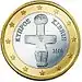 ![]() | Георгес Стаматопулос | 2002 | Монетний двір Фінляндії | У центрі монети на внутрішньому диску розміщено зображення давньогрецької срібної монети — тетрадрахми з совою[28]; справа у центральному секторі у два рядки зазначено номінал монети написом ‘’1 ΕΥΡΩ’’. На зображенні монети знизу розміщено ініціали автора ескізу монети — літери ΓΣ. На зовнішньому кільці монети по колу розміщено зображення 12 п'ятикутних зірок. У нижній зірці розміщено позначку фінського монетного двору — літеру S. Рік випуску монети, розділений нижньою зіркою, також зазначено на зовнішньому кільці[31]. | |