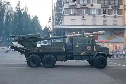 Гаубиця встановлена на шасі КрАЗ-63221.