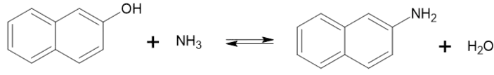 При реакції з аміаком в присутності гідросульфіту натрію відбувається реакція Бухерера і утоврюється 2-нафтиламін:[1]