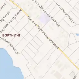 | Автобуси | А 104 (по вулиці Євгенія Харченка) |