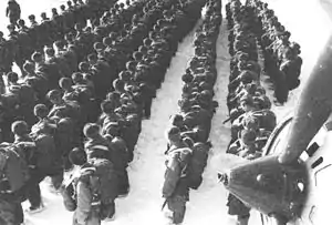У ніч на 16 січня 1941 зі складу 1-го батальйону бригади десантувала за 20 кілометрів на північний захід від Медині посилену рота, яка діяла на шляхах відходу німецьких військ.