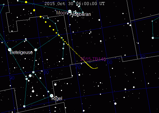 2015 TB145 — навколоземний астероїд діаметром приблизно 600 метрів — найімовірніше, це ядро виродженої комети[2]. 31 жовтня 2015 року він наблизився до Землі на 1,27 відстані до Місяця[3]. Передбачалося, що під час максимального наближення астероїд матиме видиму зоряну величину 10m[4]. У момент максимальної яскравості астрономи-аматори могли спостерігати його в невеликі телескопи. Найзручніші умови для спостереження були в північній півкулі.